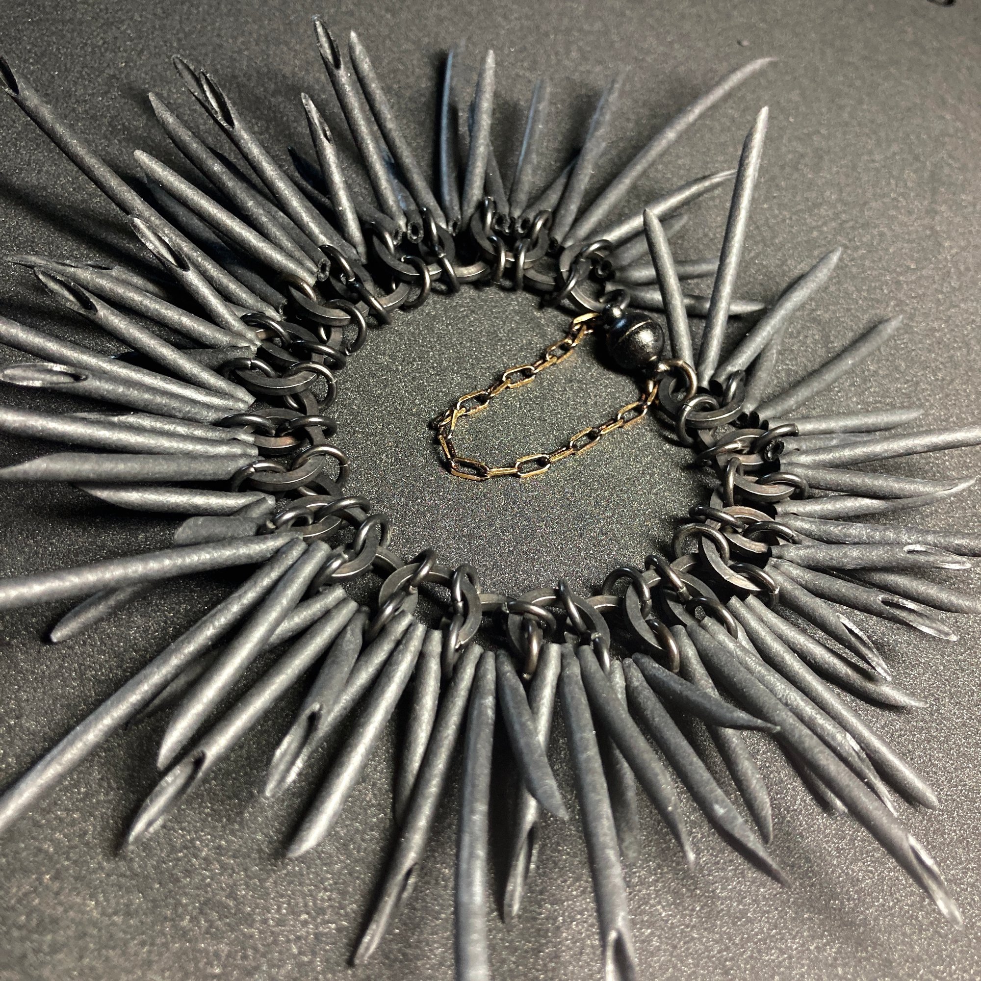 Black urchins are spikey, underwater sea creatures that are key to the health and survival of our coral reefs. Unlike real, untouchable urchins, Wired’s Black Urchin collection is made from soft, tactile, rubber tubing salvaged from my favorite San Francisco recycling center. I have been known to bring an empty suitcase in anticipation of all the cool stuff I find there.