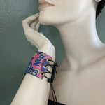 These handcrafted cuffs are made from craft beer cans. This cuff came from 3 Floyds Brewery's Gumball Head. These are lined with a thick, soft, comfy rubber and lace with a soft, rubber cord. Each cuff is one of a kind.