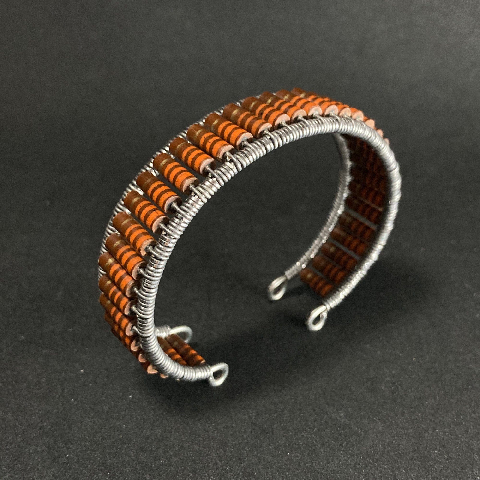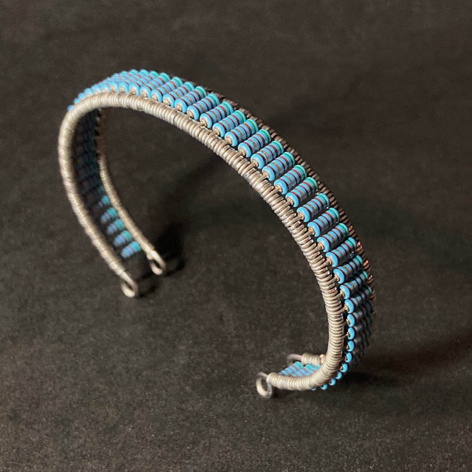 Made to Order. The RESIST collection is created from surplus resistors, transistors and diodes collected from various recycling centers and individuals. The resistors are wound one by one on to stainless steel wire, or the ends (leads) are each snipped and looped to be attached together by stainless links.