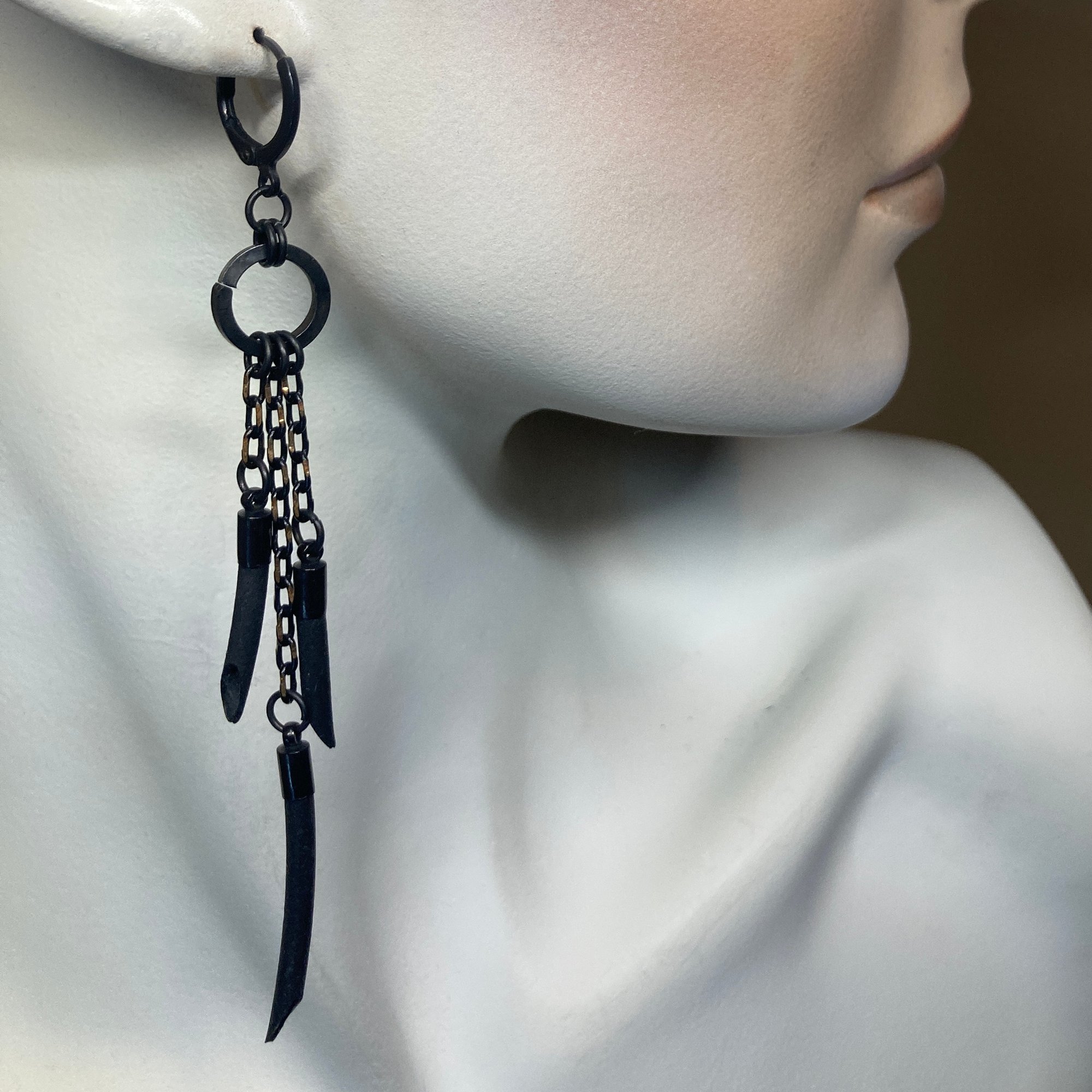 SHIMMER is a sister collection to the Black Urchin Collection. Made from reclaimed, soft, tactile rubber tubing, with the addition of black & brass, oxidized, faceted chain that shimmers in the light like underwater reflections of sunlight.