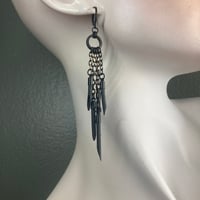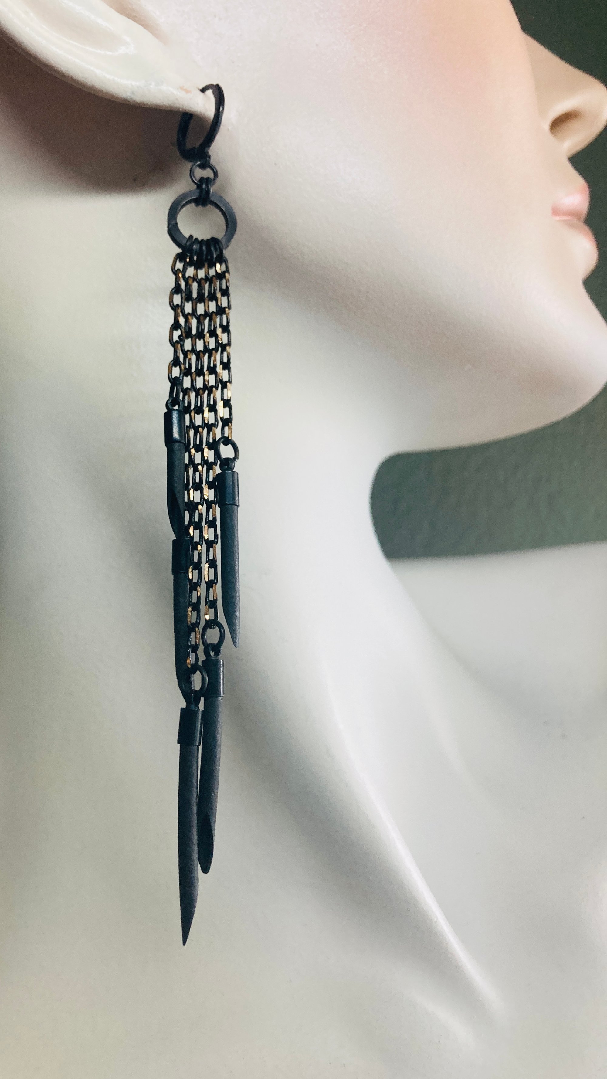 SHIMMER is a sister collection to the Black Urchin Collection. Made from reclaimed, soft, tactile rubber tubing, with the addition of black & brass, oxidized, faceted chain that shimmers in the light like underwater reflections of sunlight.