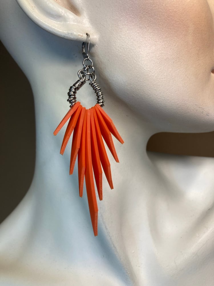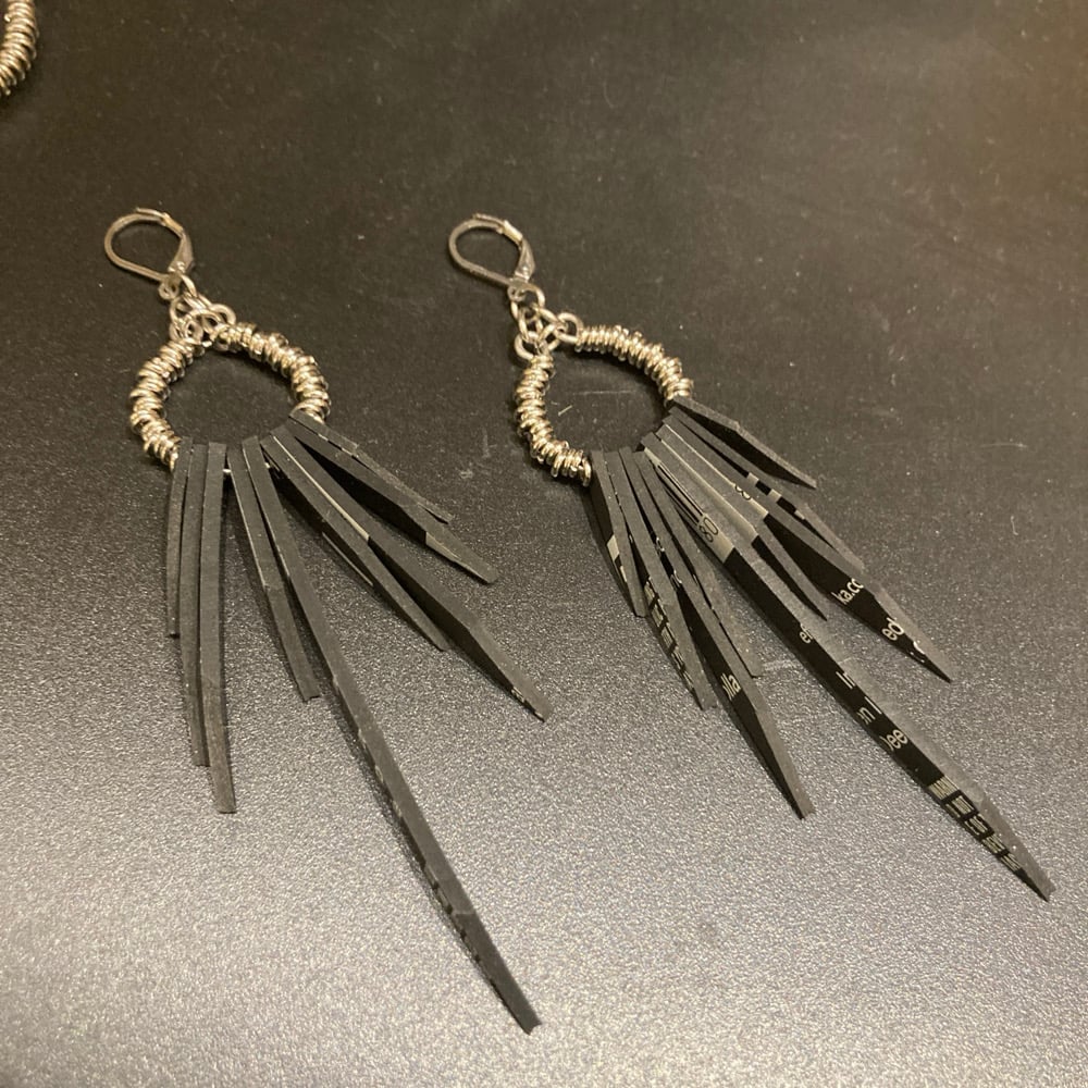 Version 3 of the EFFEN Vodka label earrings made from rubber and stainless steel wire and links.